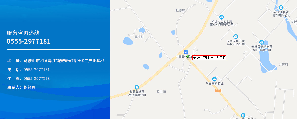 地址:安徽省馬鞍山市和縣烏江鎮安徽省精細化工產業基地 電話:0555-2977181 手機:187-0551-7353/胡經理